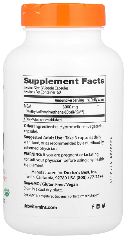 Наша формула МСМ с OptiMSM обеспечивает организм биодоступной серой - ключевым элементом для здоровья суставов, кожи, волос и ногтей.
