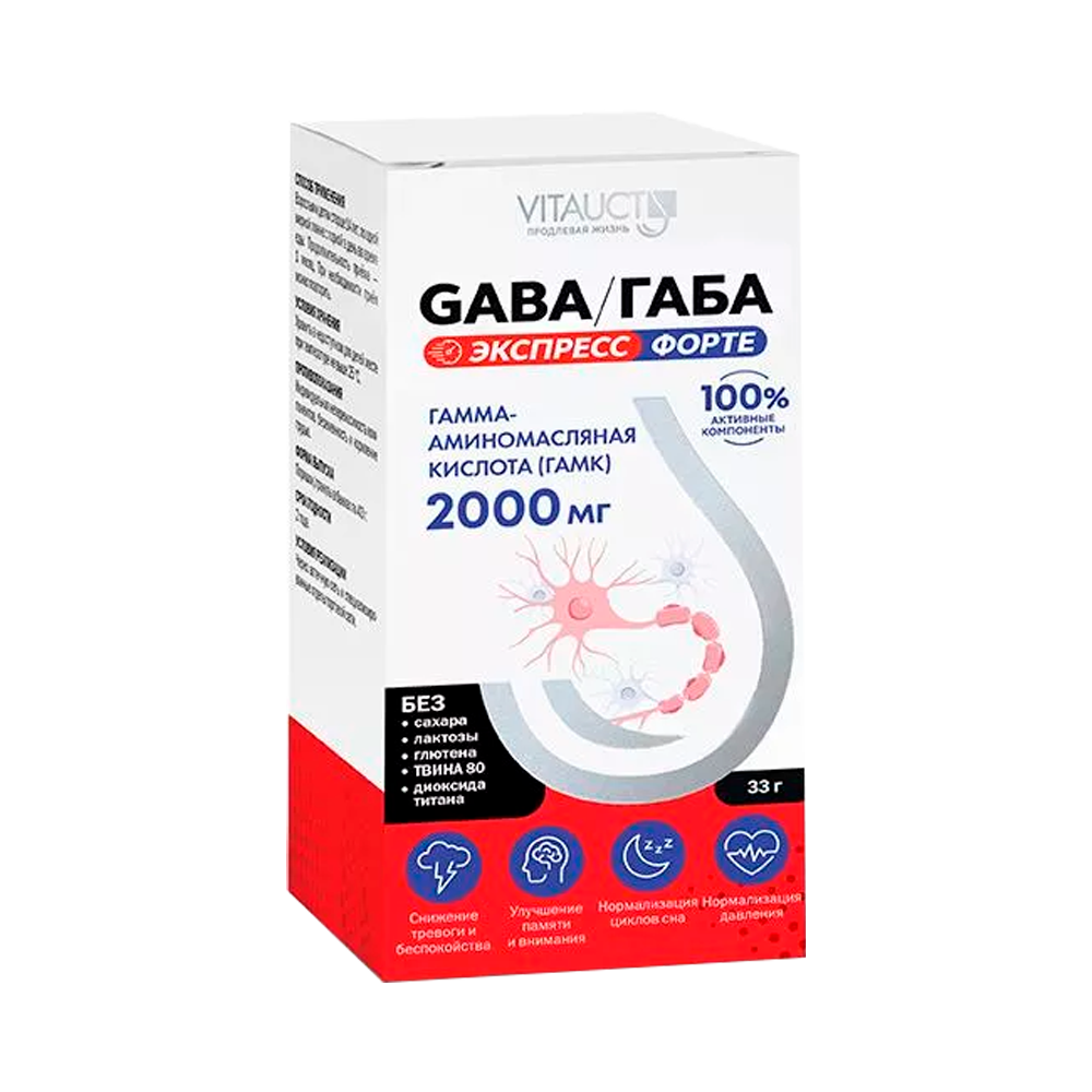 Гамма-аминомасляная кислота (ГАМК) - заменимая аминокислота, находящаяся в основном в человеческом мозге; ингибирующий нейромедиатор, регулирующий деятельность мозга и нервных клеток. ГАМК воздействует на мембрану клеток с нейротрансмиттерами и оказывает сильное успокаивающее действие на нейроны мозга.