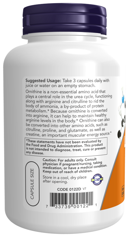 NOW L-Орнитин 500 мг, 120 капсул